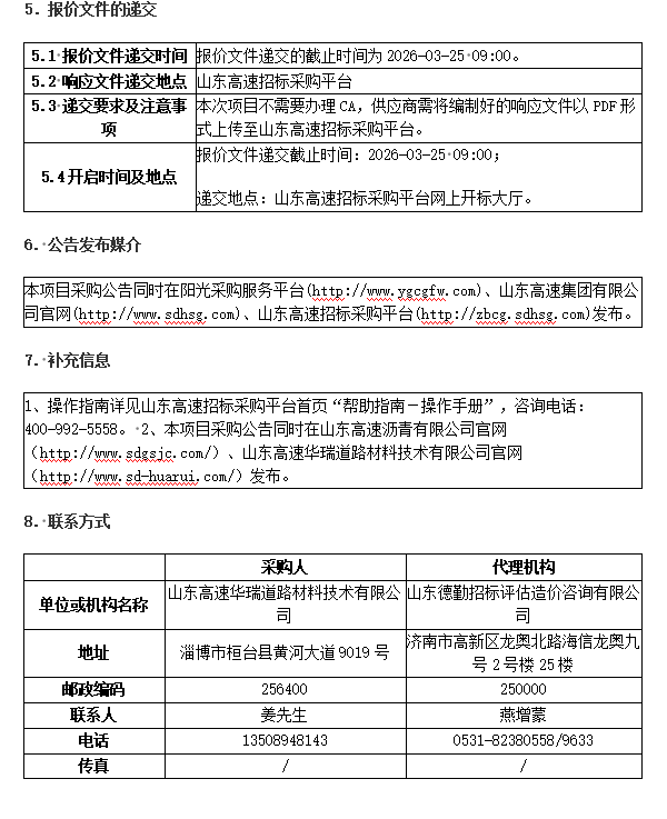 山东高速华瑞道路材料技术有限公司MAC沥青生产线改造特种改性沥青生产线项目谈判采购公告