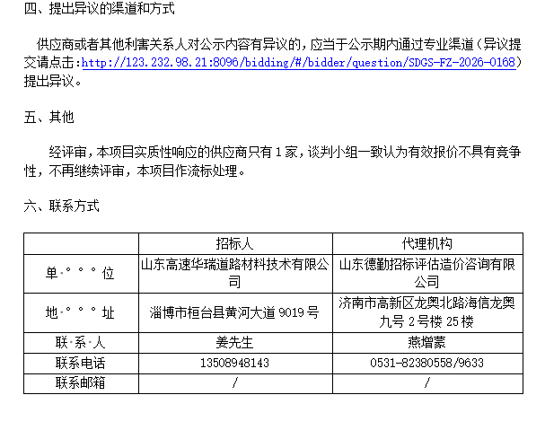 山东高速华瑞道路材料技术有限公司MAC沥青生产线改造特种改性沥青生产线项目流标公示